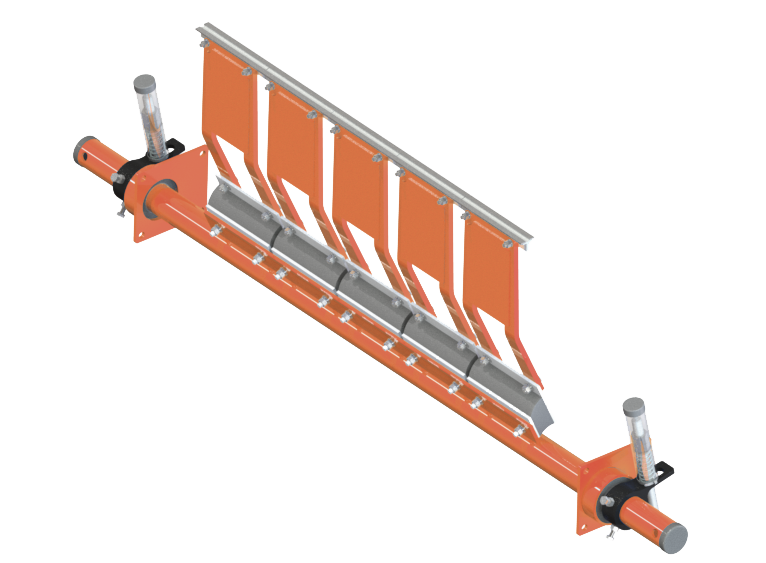 骏纬PC型清扫器安装于卸料滚筒处,用于清除附着在输送带表面物料。采用高分子复合材料刀片,设计新颖,结构简洁合理。具有抗冲击,耐磨损,抗腐蚀,易调整,低摩擦系数,不伤皮带等特点。清扫效果好,安装位置佳,易于维护。适合冷,热接头和机械接头的各种输送带的清扫。特别适合含水量大,粘附性强的恶劣工况下的初级清扫。